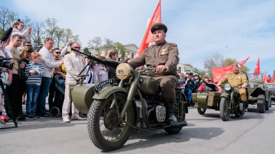 Автомобильная колонна двигалась по улицам города-героя под песни военных лет. Большую часть в параде автомобилей составил транспорт, принимавший участие в Великой Отечественной войне. Открыл заезд мотоцикл М-72, за ним следовали советские автомобили ГАЗ, а завершали колонну прославленные «Чайки», «Волги» и «Жигули», за рулем которых были водители, одетые в форму советского солдата. Кортеж ретроавтомобилей проследовал по главным улицам города и завершил свой маршрут на площади Павших Борцов, где горожане смогли сделать памятные фотографии с уникальной техникой. Анастасия Домникова. © Фото: ИД «Волгоградская правда» / Сергей Каширский.