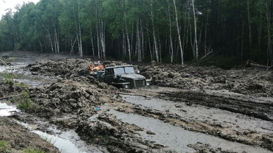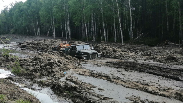 В Зейском районе автомобили по самый кузов проваливаются в грязь на дороге
