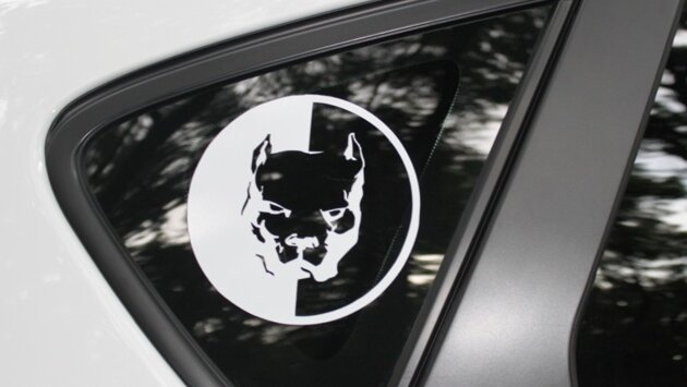 Наклейка с головой питбультерьера, выполненная в черно-белых тонах, клеится в 2-х случаях. В первом варианте это значит, что владелец машины является любителем гоночных компьютерных игр, разработкой которых занимается британская компания Pitbull Syndicate Ltd. Не исключено, что и на реальных дорогах такой водитель любит скоростную езду. Но есть и иное значение, таким символом выделяют себя ультра правые агрессивные футбольные болельщики.