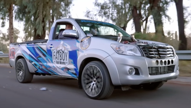Владелец тюнинг-ателье Fatboy Fab Works из ЮАР построил Toyota Hilux с битурбодвигателем V12. Под капотом пикапа — пятилитровый мотор от седана Century, спаренный с четырехдиапазонным автоматом. Также машина оснащена модернизированной подвеской и тормозами от Fortuner. В таком виде автомобиль участвует в местных хилл-клаймах. Агрегат тюнингованного пикапа может выдавать до 1000 лошадиных сил.