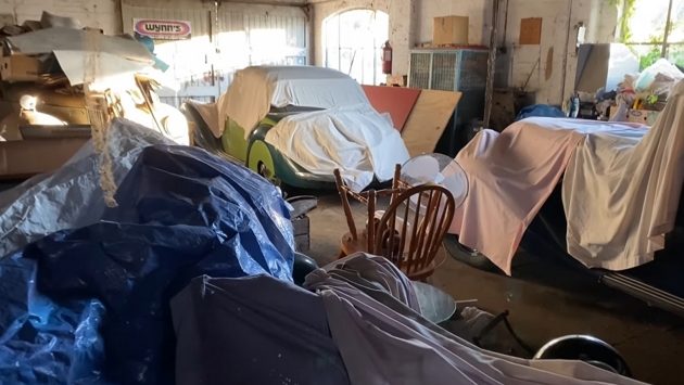 Автомобили: И всё же гораздо интереснее здание, где спрятано множество классических автомобилей и мотоциклов, включая пару BMW времен Второй мировой войны. Накрытые брезентом, автомобили находятся в относительно хорошем состоянии. Да, они пыльные, и их давно не двигали, но они целые и не имеют заметных признаков ржавчины снаружи.