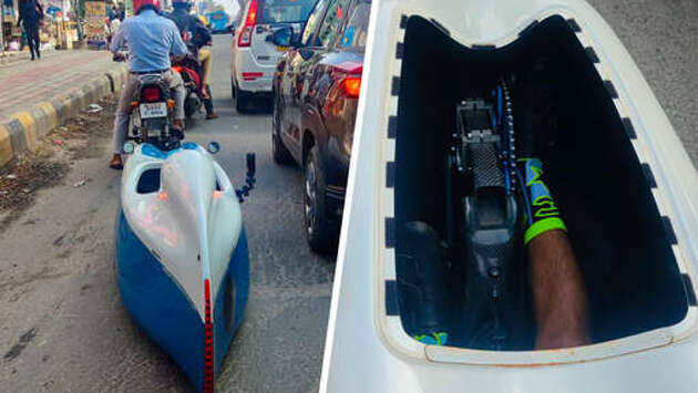 Индиец разъезжал по Бангалору на велосипеде, похожем на подводную лодку