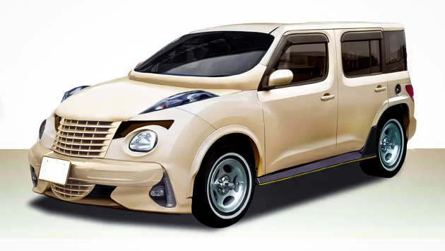 По мотивам SsangYong Rodius оформили фонари и задний бампер, а основные фары пересадили с Ford Scorpio. Квадратный кузов с ассиметричным задним стеклом взят у Nissan Cube, колеса — у AMC Pacer. Также в компиляции невольно поучаствовали Honda Civic Type R, с которой срисовали боковые юбки, и Toyota Prius с передним бампером.
