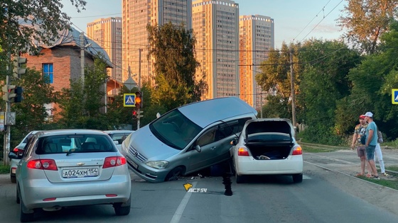 Вечером 6 августа в Октябрьском районе Новосибирска произошло столкновение трех автомобилей. На перекрестке улиц Пролетарская и Гурьевская соприкоснулись хэтчбек Nissan Tiida, седан, похожий на Toyota Premio, и минивэн Toyota Ipsum. В результате ДТП минивэн оказался опрокинутым на другие автомобили.