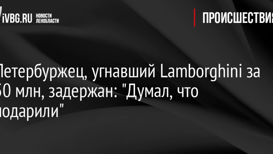 Петербуржец, угнавший Lamborghini за 50 млн, задержан: "Думал, что подарили"