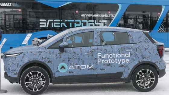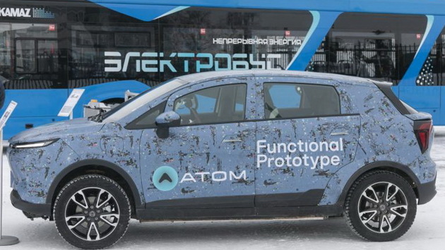 На КамАЗе не скрывают, что используют для ходовых прототипов «Атома» донорские кузова, причём корпоративная газета поделилась фотографией одного из предсерийных электрокаров с элементами Geely Geometry E.