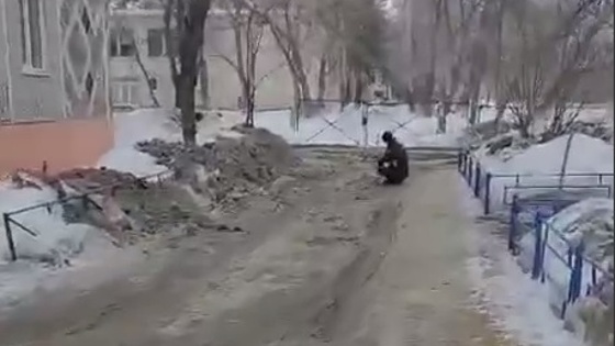 А во дворах домов №7 и №7/1 по ул. Космической дворник вынужден бороться с колеей с помощью топора. Трудоемкий процесс скалывания наката и колеи заснял оренбуржец. Чтобы как-то привести дорогу в порядок, местный дворник взялся за топор.