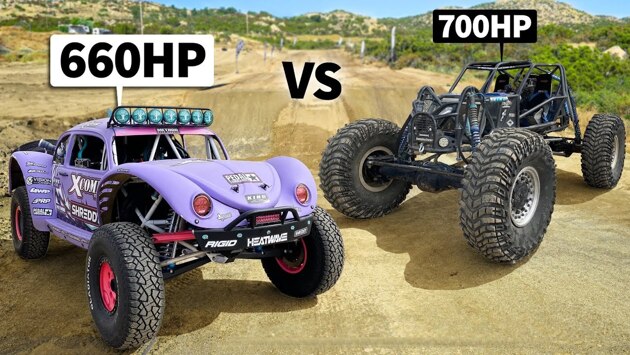 Американская команда Hoonigan, которая помимо подготовки автомобилей к гонкам ведёт и собственный блог, представила новый эпизод своего проекта This vs. That. В новой гонке по прямой блогеры продолжили тему заездов по бездорожью с участием сверхмодернизированных вездеходов — на сей раз в гонке сошлись два подготовленных багги. Это хардкорный Monster Buggy и трофи-трак Jaws, который стилизован под монструозный Volkswagen Beetle.