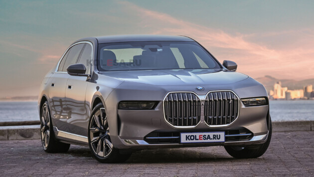 Спустя всего неделю к нему присоединился и легковой флагман баварцев — представительский седан 7 серии, обладающий весьма необычным дизайном и изначально задуманный именно с таким вариантом передней оптики. На представленных рендерах мы убрали верхнюю часть передней оптики со светодиодными огнями, оставив лишь основные блоки фар, встроенные в бампер.
