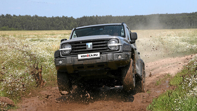 Как вы можете видеть по фото, геометрической проходимости «Тэнка» с любым типом трансмиссии можно только позавидовать: тут и дорожный просвет в 224 мм, и короткие свесы, и огромные ходы подвесок. Единственное слабое место – упомянутые выше шины Hankook Ventus S2 AS X размерности 265/65 R17 с абсолютно дорожным рисунком, не подходящие для езды по грязи. И тем не менее нам удалось спокойно преодолеть глубокую глинистую колею на обеих машинах.