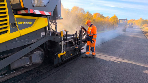 На данный момент началась обработка битумной эмульсией, также укладывается выравнивающий слой асфальтобетонной смеси. Далее планируется устройство верхнего слоя асфальта, а укрепление обочин будет выполнено на ширину 1 метр с каждой стороны.