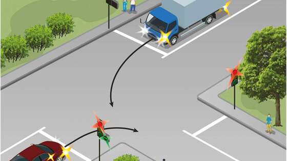 На картинке изображена очень частая предаварийная ситуация, и от ДТП здесь спасет элементарное знание Правил дорожного движения.Обязан ли водитель, поворачивая направо, уступать дорогу грузовику? Отмечайте свой вариант в опросе ниже. А правильный ответ – на следующей странице. Правильный ответ: 1 Водитель легкового автомобиля не может доподлинно знать, какой сигнал светофора горит для водителя грузовика. При этом пункт 13.5 ПДД РФ обязывает водителя при движении в направлении стрелки, включенной в дополнительной секции одновременно с желтым или красным сигналом светофора, уступить дорогу транспортным средствам, движущимся с других направлений. Невыполнение требования уступить дорогу в данном случае наказывается штрафом в размере 1000 рублей по части 2 статьи 12.13 КоАП РФ. Еще один тест на знание ПДД тут.