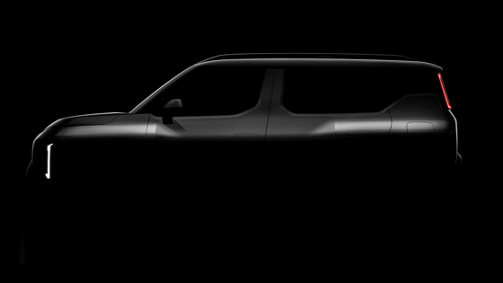 У автомобиля на затемненных изображениях угловатый силуэт с коротким капотом, большие боковые окна и стойки в цвет кузова. Также видны вертикальные ДХО в духе большого EV9, L-образные фонари, рейлинги на крыше и «спрятанные» дверные ручки.