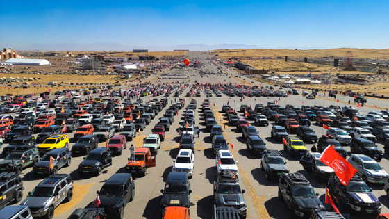 У китайцев в начале октября целая неделя каникул, посвящённых национальному празднику. Поэтому джиперы стекаются в автономноый район Внутренняя Монголия со всей огромной страны — для некоторых особо отдалённых регионов это несколько дней пути. Но масштабы того, что открывается взору в пустыне Alxa, поражают. На подъезде к площадке проложенное в пустыне шоссе упирается в стелу, прямо как в Гудвуде. Сложно в это поверить, но дальше эта дорога никуда не ведёт — огромную асфальтированную то ли взлётку, то ли парковку (и ведущее к ней шоссе) сделали в пустыне специально для фестиваля.