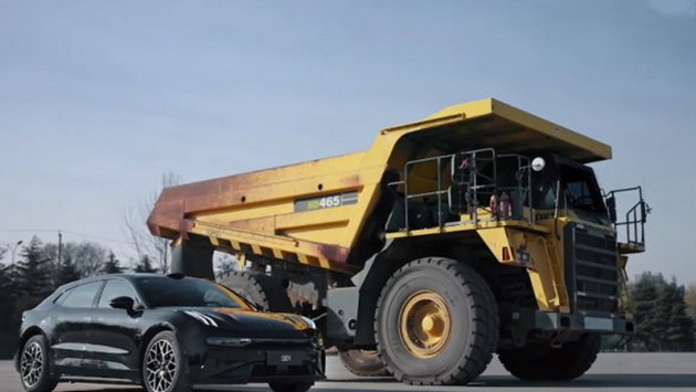 Zeekr показал на видео буксировку 51-тонного самосвала