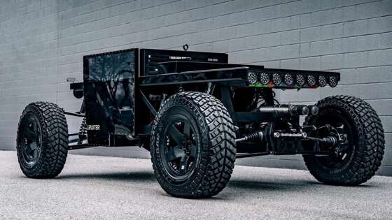Коробка здесь автоматическая, а не куда более уместная для багги механика – ведь о «драйвере» дизайнер не думал, полагаясь только на умозрительные «желания» самого автомобиля. Коробка стыкуется с 6,3-литровым бензиновым Chevrolet V8; привод – задний.