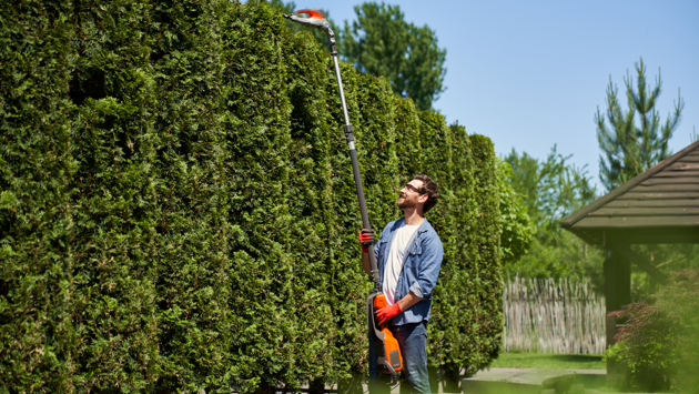 Для работы с таким элементом сада требуется правильный инструмент, который сможет справиться с густыми зарослями и обеспечит удобство работы на высоте. Кроме того, высокие живые изгороди, особенно во взрослом состоянии, имеют прочный костяк: ветки, которые вы соберетесь укорачивать, могут иметь толщину до 35 мм.