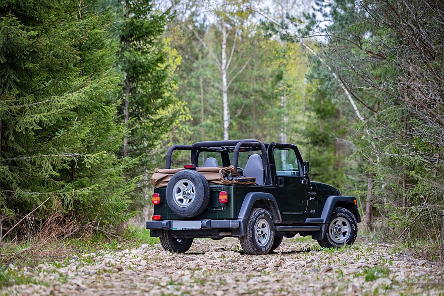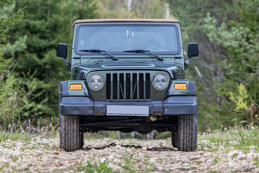 Эта машина европейской версии TJ, и ввезена в Россию она была из Германии. От американских автомобиль отличается фонарями и расположением заднего номера на бампере, а не на заднем борту, как, например, у Дефендера.