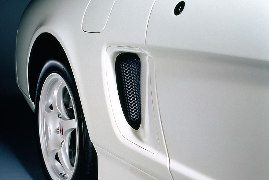 Ведь несмотря на то, что концепт HP-X изначально оснащался двухлитровым двигателем C20A, серийный NSX решили оснастить V-образной «шестёркой» С30A с системой газораспределения DOHC. Шатуны из титанового сплава позволили поднять максимальные обороты до мотоциклетных 8000 об/мин, а знаменитая хондовская система фаз газораспределения VTEC даже заставила конструкторов наклонить поперечно расположенный мотор в сторону задней оси. С двигателя, который сочетался с механической трансмиссией, инженеры сняли 274 л.с., а на версии с АКП мощность мотора ограничили на уровне 255 «лошадок».