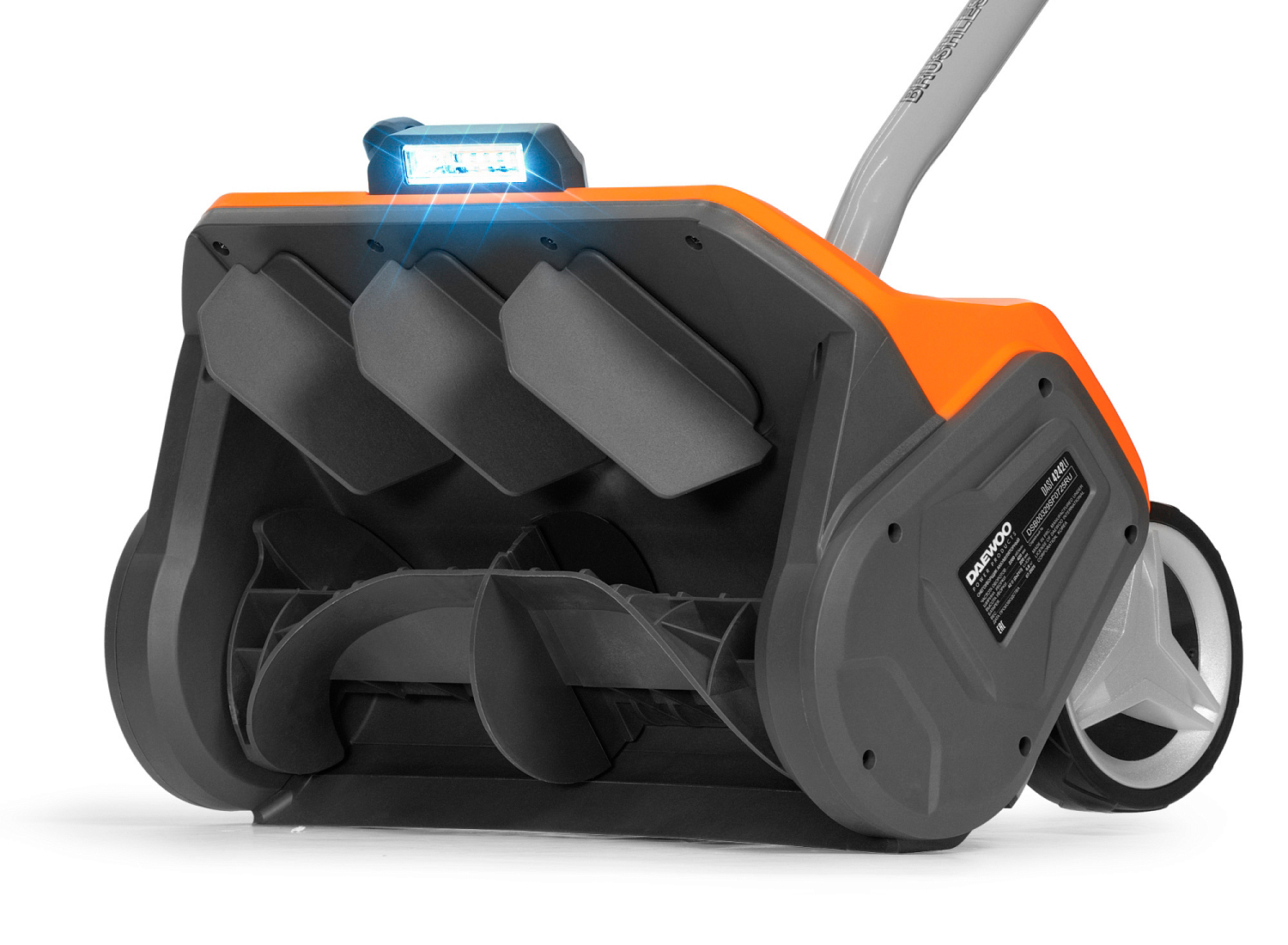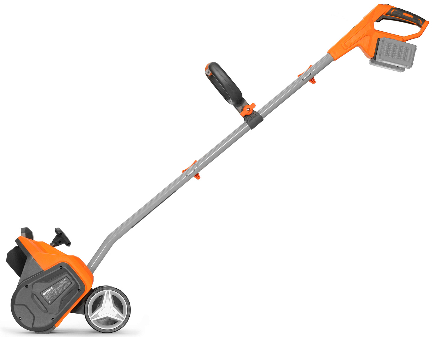 (мощность — 850 Вт) работает на двух АКБ 20 V. Ковш имеет ширину захвата 36,5 см — это позволяет быстро очистить площадку до 20 м². Из дополнительных полезных опций — простая регулировка направления выброса снега и складная ручка.