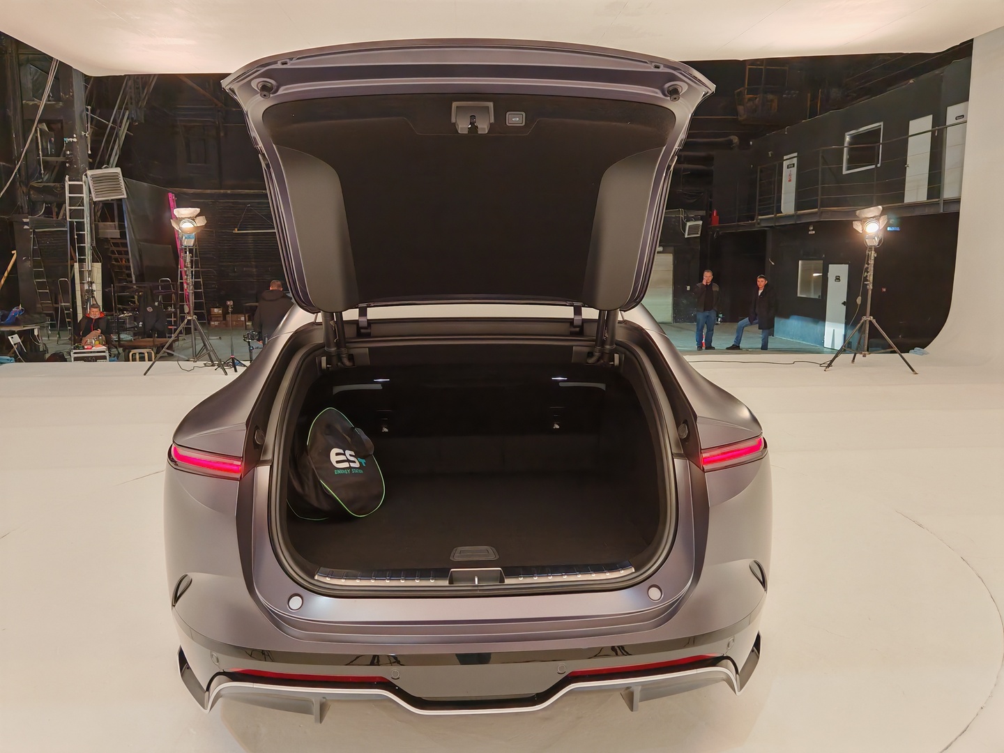 На приподнятой корме разместился небольшой активный спойлер, который по умолчанию открывается на скорости более 90 км/ч на 20,9 градусов. Впрочем, водитель может изменить настройки и, например, ездить с постоянно поднятым элементом, или никогда его не открывать.