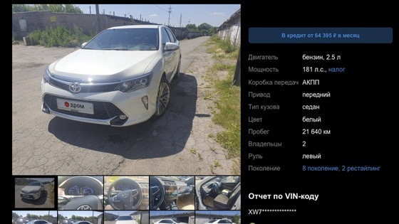 В РФ сняли с хранения и выставили на продажу Toyota Camry 2017 года: дорого