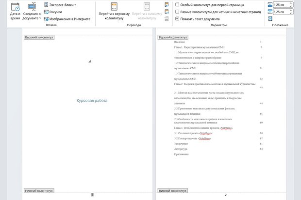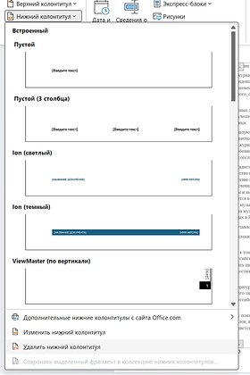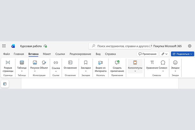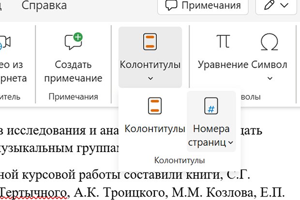 1. На верхней панели нажмите «Вставка» и выберите раздел «Колонтитулы».