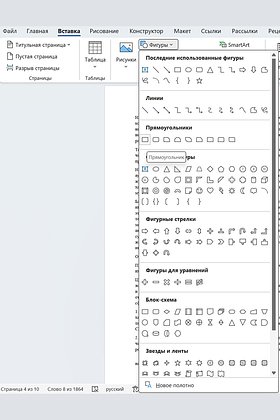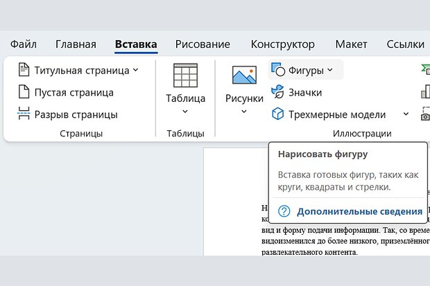 1. Нажмите «Вставка» и выберите раздел «Фигуры».