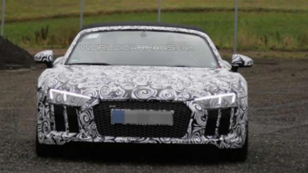 Немецкая автомобилестроительная компания Audi выпустила на дорожные испытания новую модель под названием Audi R8 Spyder 2017 модельного ряда на трассы Нюрбургринга, о чем свидетельствуют свежие снимки фотошпионов, которым посчастливилось запечатлить прототип новинки. Ожидается, что публичная презентация Audi R8 Spyder состоится в рамках ежегодного Международного женевского автосалона в следующем году. Производитель оснастил новинку не только мягкой крышей, но и массой инновационных стилистических решений. Например на снимках можно заметить вентиляцию на капоте и заднее ветровое крыло. По предварительной информации под капотом Audi R8 Spyder будет функционировать 5,2 литровый силовой агрегат V10 с отдачей в 540 лошадиных сил. Так же ожидается выход подогретой версии.