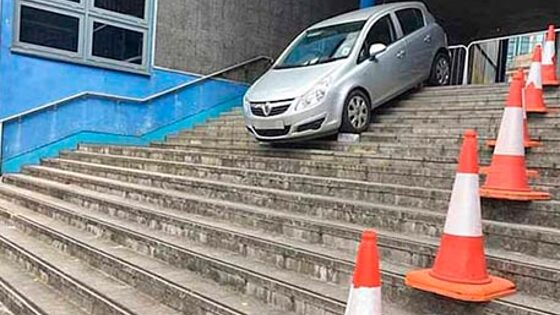 Британская старушка припарковала свой Opel на лестнице