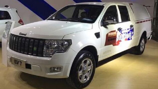 Китайский производитель Kawei привёз на автовыставку в Гуанчжоу полностью электрический пикап Kawei K150 EV7, который является копией легендарного Ford F-150 Raptor 2009 года выпуска. Известно, что 61-сильная электрическая установка и высокоэффективные батареи обеспечат запас хода без подзарядки до 350 км. Обновленный пикап получил целый ряд косметических доработок. Габариты «посвежевшего» авто следующие: 5560 х 1940 х 1890 мм, размер колесной базы достигает 3 500 мм, а длина грузовой платформы: 1805 x 1590 x 560мм. В салоне пикапа появился новый блок управления климатом, измененная приборная панель, модернизированная передняя консоль, другая шайба селектора коробки передач и новейший мультимедийный комплекс с огромным сенсорным дисплеем. Добавим, что в моторном отсеке стандартного пикапа располагается двухлитровый турбомотор, производительность которого 190 л.с. от Mitsubishi или 1,9-литровый турбированный дизель с отдачей 150 сил. В паре с ним трудиться 6-ступенчатая «механика». Система привода может быть как полной, так и задней.
