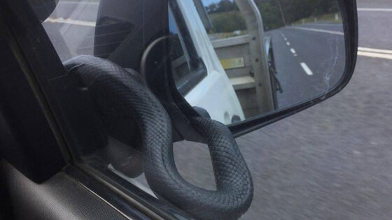 В Австралии змея спряталась в машине и вылезла наружу прямо на ходу. Судя по фотографиям, размещенным на странице Nolans Auto Parts & Industrial Supplies на Facebook, пресмыкающееся скрывалось в корпусе зеркала заднего вида.