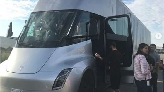 Очевидцам даже удалось заглянуть с фотокамерой в кабину, и мы теперь знаем, что в интерьере грузовика от Илона Маска есть два больших сенсора, один из которых отдан под навигацию. По заявлению представителей Tesla, запас хода Semi рассчитан на 8010 км, а его силовая установка позволяет набрать скорость до 100 км/ч за 5 секунд.