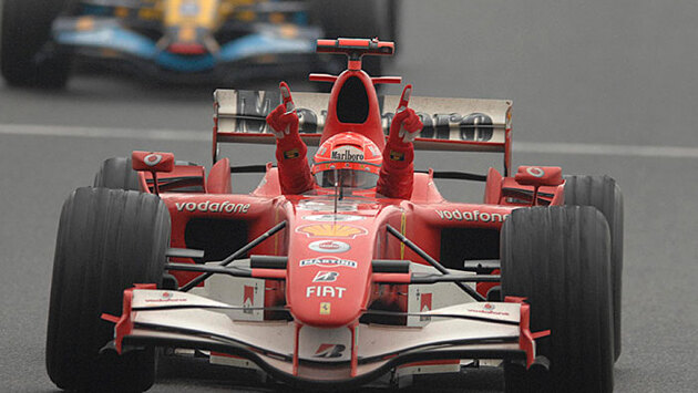 Это знаменитый Ferrari, на котором в 2000-е годы выигрывал многочисленные гонки легендарный Михаэль Шумахер. По словам владельца, покататься на этой машине не получится, это просто выставочный экземпляр. Тем не менее уникальный дизайн скудерии полностью сохранен.