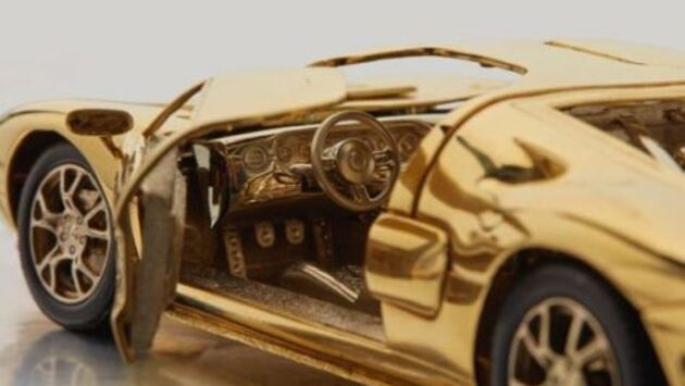 Как стало известно, одним из лотов на торгах Sotheby's станет уменьшенная копия модели Ford GT 2006 г.в., выполненная из 18-каратного двухцветного золота. Машинка весьма функциональна: у нее открывается капот, дверцы и багажник. Кроме того у модели вращаются колеса.