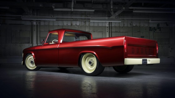 Среди других особенностей — поднятый пол грузовой платформы от нового Ram 1500, расширенные арки, 22-дюймовые колеса в стиле 60-х, отсутствие внешних элементов декора, LED-фары и фонари, отделка салона кожей Blazing Saddle Tan, оригинальный руль, приборы Mopar на алюминиевой подложке.