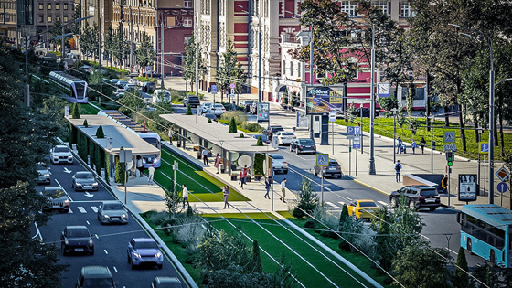 Трамвайные пути предлагается продолжить в основном по центру дороги, в некоторых местах – на краю проезжей части. Пространство под рельсами засеют травой, вдоль трамвайных линий высадят деревья. При этом бордюры, установленные в рамках программы "Моя Улица", останутся на месте.