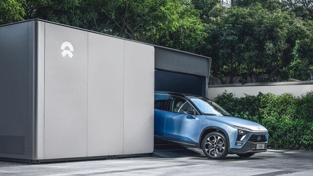 Китайская марка Nio вместе со стартом продаж своих электрокаров развернула не только сеть станций зарядки аккумуляторов, как делают многие производители, но и построила станции экспресс-замены батареи. Они представляют собой небольшой бокс, в который заезжает электромобиль. После этого водитель выходит, транспортное средство вывешивается на подъёмнике, затем снизу подъезжает аппарат, который извлекает аккумуляторную батарею, увозит её и устанавливает новую. Электрокар опускается на землю, водитель садится в него и уезжает. Nio утверждает, что на замену батареи уходит всего три минуты, но судя по видеороликам, этот процесс занимает всё же в районе пяти минут. Первая станция была открыта в 2018 году в Пекине, а на сегодняшний день их число достигло 131. Основная часть станций расположена в окрестностях Пекина, Шанхае и трассах Пекин-Гонконг-Макао и Пекин-Шанхай. Nio называет замену батареи самым быстрым способом пополнить запас хода.