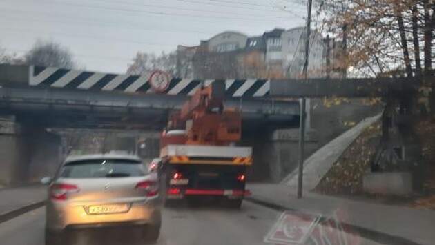 В Калининграде очередной автомобиль не смог проехать под мостом на улице Островского. Очевидец опубликовал фотографию и ролик в сообществе «Янтарный ДЛБ», на которой можно увидеть автовышку, застрявшую рядом с мостом. Все произошло в среду, 11 ноября. Если быть точнее, водитель не прошел через рамку, указывающую на габариты, и сдвинул ее. «На Островского в сторону Гайдара. Мост Глупости и Самый Умный», - прокомментировал автор поста. Отметим, что это уже не первый подобный случай, когда габаритная техника не может проехать по улице Островского. В августе под мостом застрял грузовик, а в мае - мусоровоз.