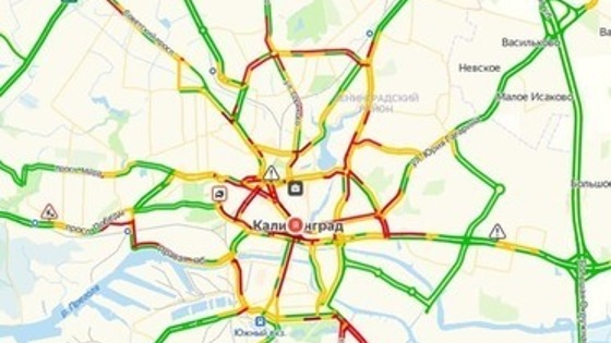 Днём во вторник Калининград встал в семибалльных пробках