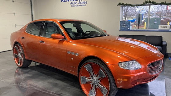В штате Кентукки (США) выставили на продажу седан Maserati Quattroporte с 26-дюймовыми дисками без отверстий. Гигантские колёса со спорным дизайном сделаны неаккуратно и по сути представляют собой украшенные орнаментом блюдца. Цена экзотичного Maserati невысока: автомобиль 2008 года выпуска оценили в 12 995 долларов.