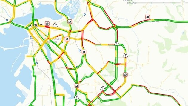 Большие заторы наблюдаются на проспекте Победы, Сибирском тракте с переходом в улицу Николая Ершова, улице Аграрной, Гвардейской, Аделя Кутуя.