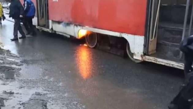 Трамвай с пассажирами загорелся во время движения в Нижнем Новгороде