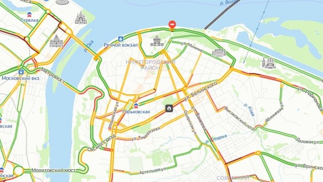 Крупные пробки наблюдаются на дорогах, окружающих Нижегородскую ярмарку, на улицах Сергея Акимова, Самаркандской и Керченской. Также заторы образовались на Московском шоссе и ул. Коминтерна, где «Яндекс» фиксирует сразу несколько особо аварийных мест.