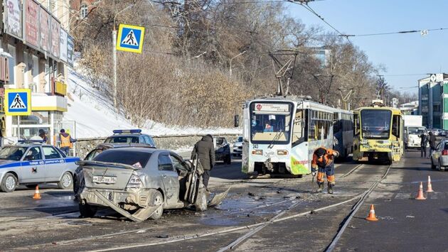 В Иркутске трамвай таранил 9 автомобилей: отказали тормоза