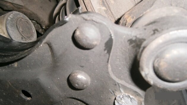 Но у ряда моделей машин шаровая крепится к рычагу на заклепках. Поэтому, чтобы ее заменить, приходится срезать заклепки и устанавливать новую деталь на болты.