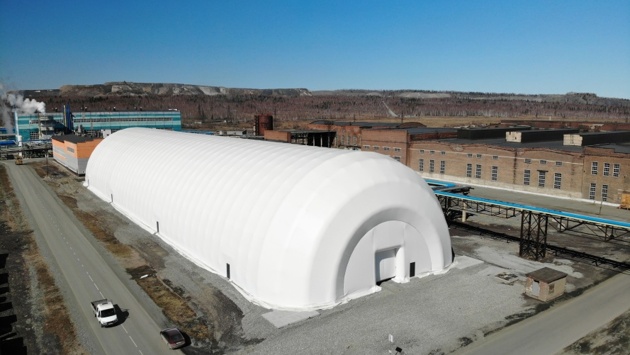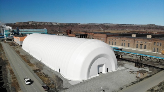 ТАСС, 6 мая. Надувная конструкция внушительных размеров появилась на Среднеуральском металлургическом заводе (ПАО "СУМЗ", предприятие металлургического комплекса Уральской горно-металлургической компании, г. Ревда Свердловской области). Ее длина составляет 134 метра, ширина - 35, высота - 17, рассказали в четверг в пресс-службе УГМК. Сооружение будет служить складом медного концентрата, в него поместится порядка 30 тыс. тонн.