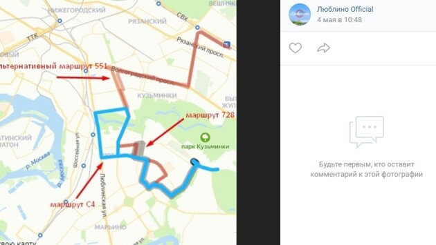 С 9 мая в районе Люблино изменились маршруты некоторых автобусов. Об этом сообщили на странице «Люблино Official» в социальной сети «ВКонтакте» со ссылкой на столичный департамент транспорта. Например, автобус № 280 будет идти от метро «Люблино» и вместо остановки «Больница имени Семашко» поедет кольцом через Краснодарскую, Цимлянскую и Белореченскую улицы. Автобус № 657 вместо метро «Марьино» поедет до конечной остановки «Марьино» на Донецкой улице. От метро «Братиславская» автобусы поедут к Ставропольскому проезду через улицу Верхние Поля, Новороссийскую, метро «Люблино», Краснодарскую и улицу Марьинский Парк. Также можно воспользоваться маршрутами 280, 541, 625, 658 и 957. Автобус № 728 объединят с маршрутом С4. Можно будет использовать обновлённые маршруты С4 и 551.