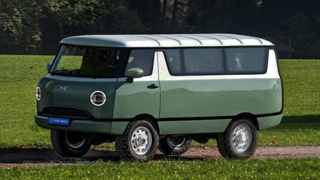На рендере микроавтобус сохранил свой фирменный стиль. При этом экстерьер машины получил современные штрихи. У представленного автомобиля есть светодиодная головная оптика, пластиковая облицовка бампера и зеркала заднего обзора с указателями поворота.