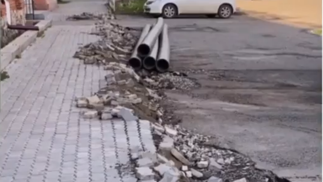 Тротуарную плитку в Благовещенске разрушили ради нового бордюра